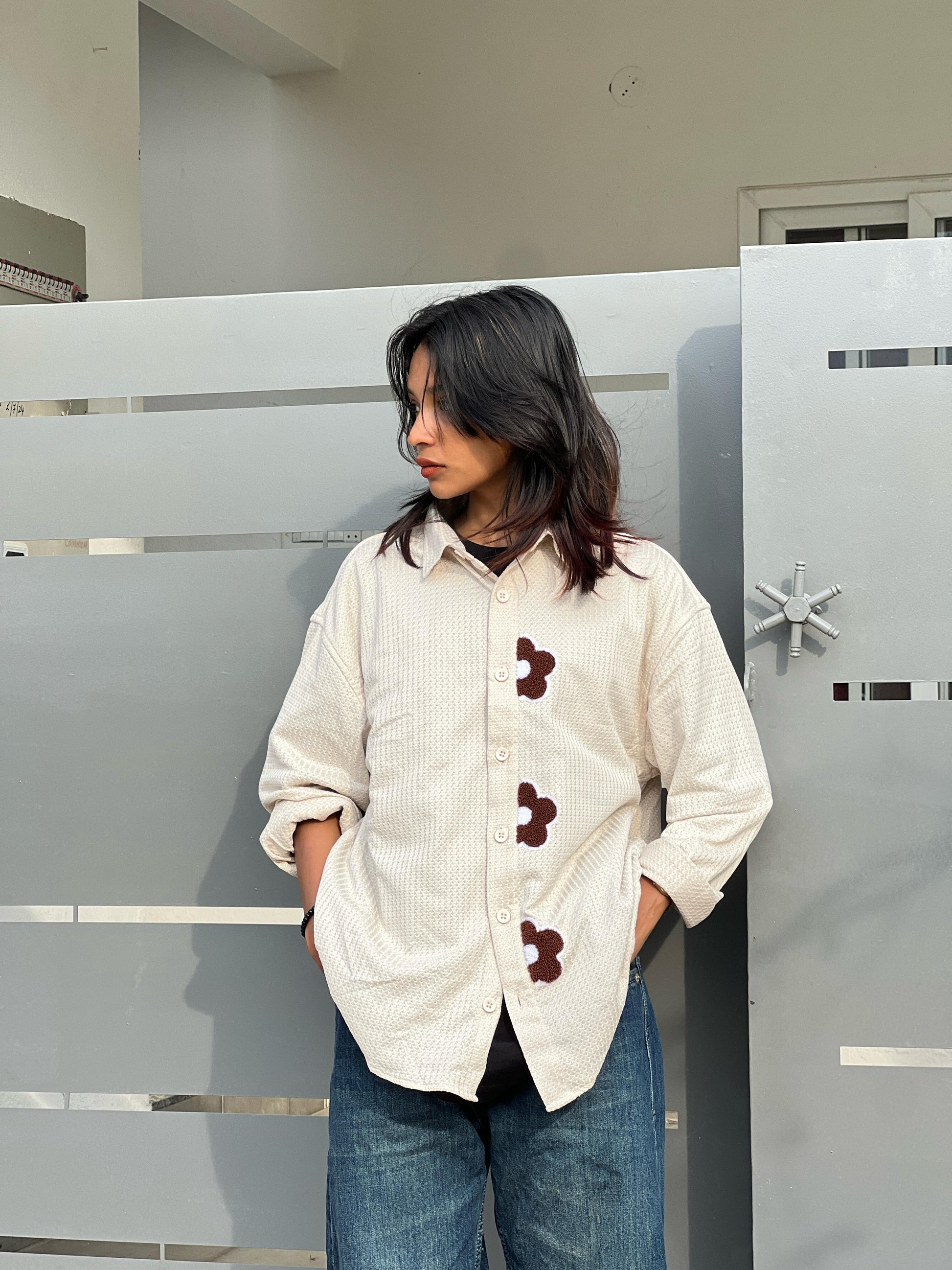 OVERSIZED FULL SLEEVE SHIRT WITH CHELANI WORK